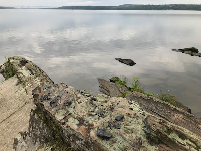 this mornings', 7/1/21, marking drawing sites (looking North, East and SouthEast) with Kingston Point, NY and map with last three marking sites; Ulster Park/Sturgeon Pool, Rosendale and Kingston Point since returning with Delaware and Susquehanna journey 6/22...