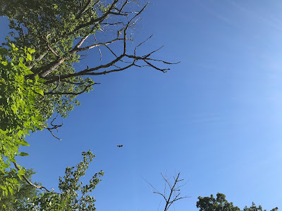 after marking, sitting with ground, shrieking arriving above with Cooper Hawk, leaping from one dead branch to another with constant speaking, sounds that enter the bone, playing like flute vibrations... observing and leaving when the time was right...